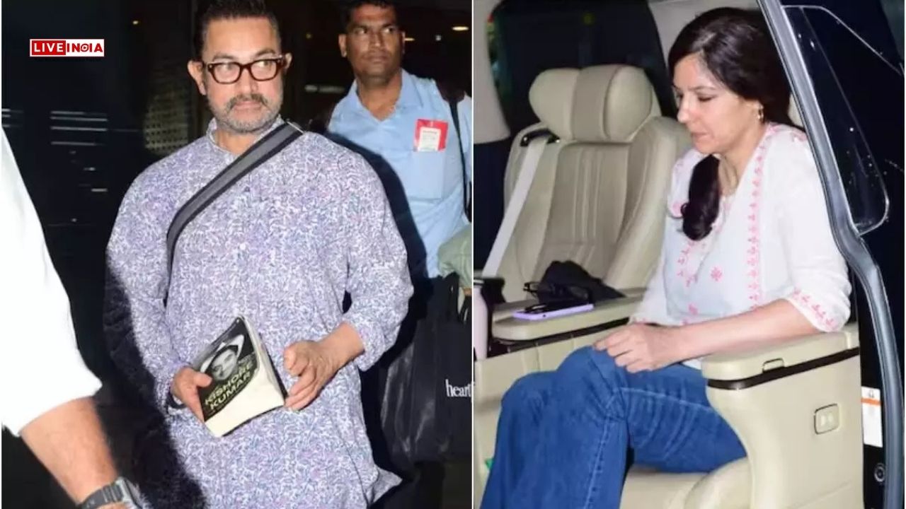 Aamir Khan, Gauri Spratt, Aamir Khan girlfriend, Aamir Khan Delhi airport, Sitaare Zameen Par, Aamir Khan marriage, Aamir Khan latest news, Bollywood couples, celebrity airport looks