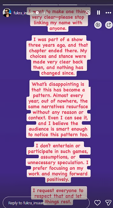 YouTuber Fukra Insaan breaks silence on “disappointing pattern” of relationship link-ups; Jiya Shankar goes Insta-official with a mystery man to shut down speculation.