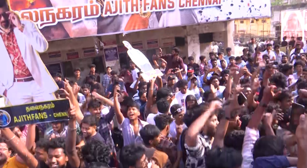 Ajith’s films have always been more than just a cinematic experience for his fans—they are an event. For every release, his fans come together in large numbers, holding up posters, wearing T-shirts bearing the actor’s image, and cheering for him. Good Bad Ugly was no exception, as the atmosphere outside theatres was filled with festive fervor.