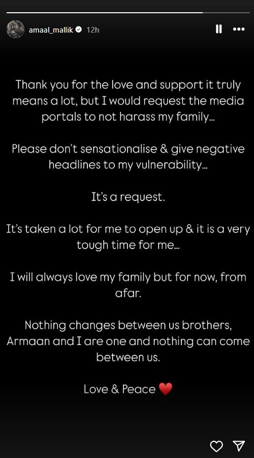 Despite the deep personal pain, Amaal reassured his followers that his bond with Armaan remains strong. “Nothing changes between us brothers, Armaan and I are one, and nothing can come between us,” he emphasized, showing solidarity with his sibling amid the turmoil.