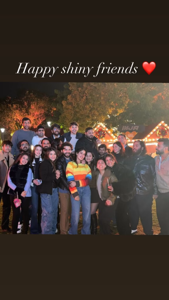 Ananya’s caption, “Happy shiny friends ❤️”, perfectly captured the joyous vibe of the moment. In the picture, Ananya looked radiant in a black cosy outfit, while Janhvi Kapoor stood out in a vibrant multicolored sweater paired with blue denim jeans. The cozy and stylish ensembles of the group reflected the warmth and friendship among the stars.
