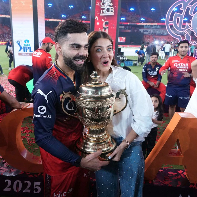 June 4, 2025 | As Royal Challengers Bengaluru (RCB) finally lifted their maiden IPL trophy after 18 years, all eyes were on Virat Kohli—and by his side, actor and wife Anushka Sharma, who turned heads with her chic yet luxurious style at the Narendra Modi Stadium in Ahmedabad.
