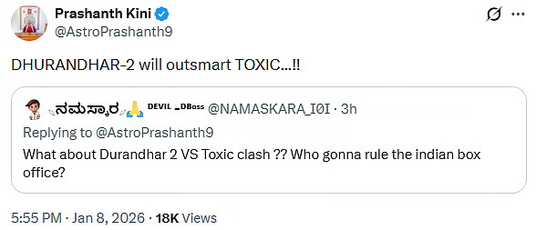 Kini further predicted that while Dhurandhar 2 might earn more than Toxic, it may still struggle to surpass the “unrepeatable” lifetime collections of the first Dhurandhar film.