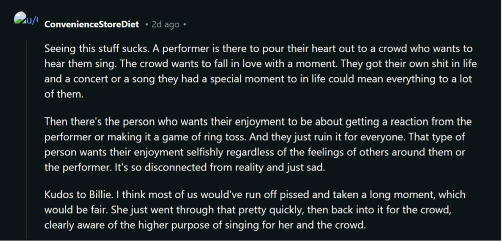 Others praised Eilish for her graceful response. A user noted, “She handled herself with so much composure. I don’t know how she didn’t lose it.” Another fan wrote, “The way she swallowed that moment and kept going—impressive and heartbreaking.”