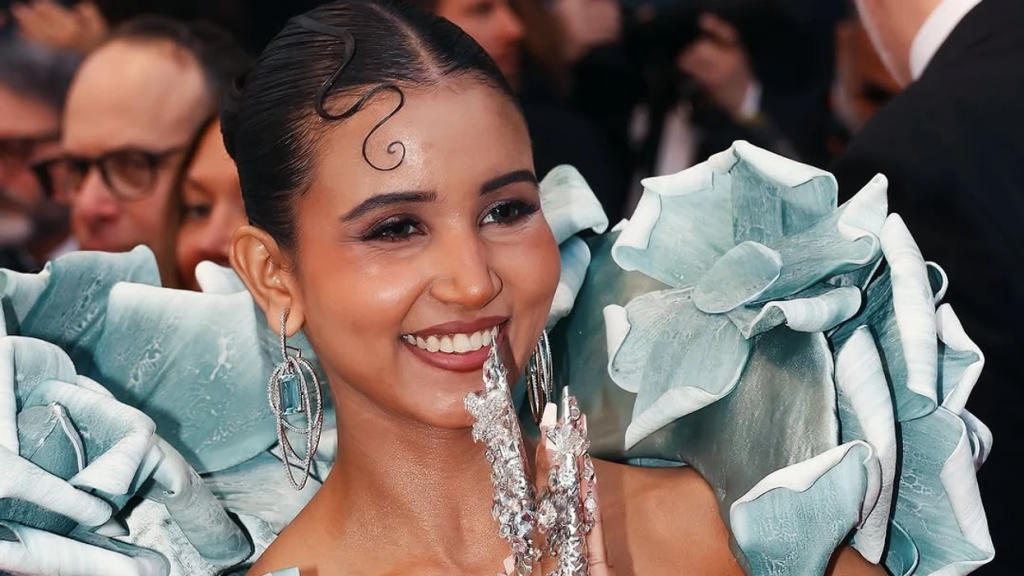 Nancy Tyagi rose to fame in 2024 after designing her own debut gown for Cannes. She has since become a symbol of aspirational Indian creativity — blending resourcefulness with red carpet flair.