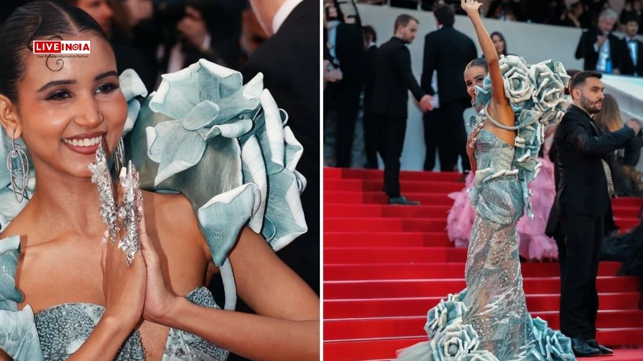 Nancy Tyagi Cannes 2025, Cannes Film Festival red carpet, Indian influencer at Cannes, self-made fashion, Seelampur to Cannes, Nancy Tyagi gown, Indian fashion designer