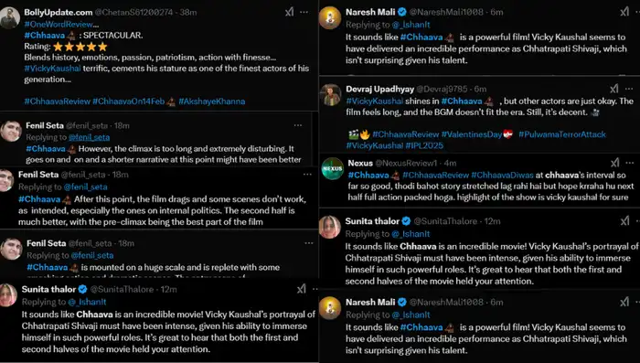 💬 “#OneWordReview: SPECTACULAR! 🔥 #Chhaava is a visually stunning and deeply moving cinematic experience. #VickyKaushal is at his peak! Rating: ⭐⭐⭐⭐½”