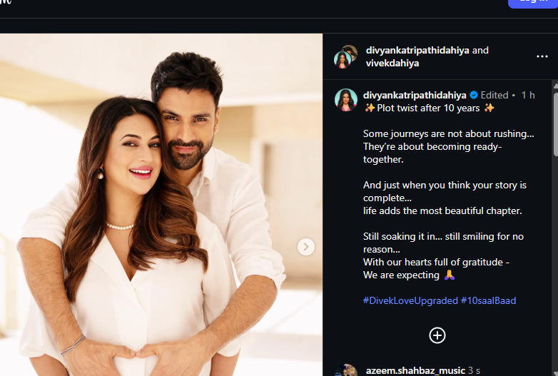 Television stars Divyanka Tripathi and Vivek Dahiya have shared joyful news with fans — the couple is expecting their first child after a decade of marriage.