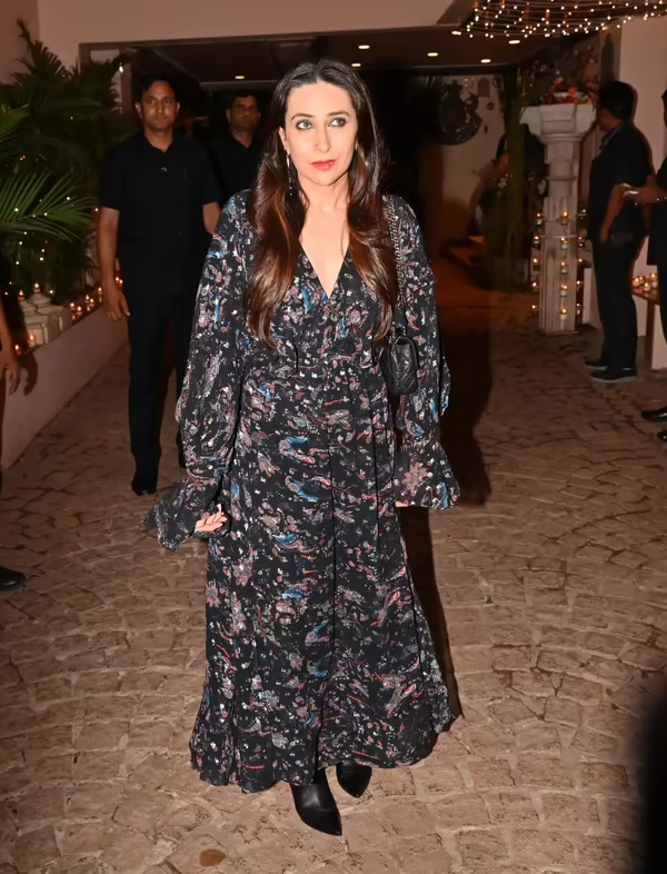 Paparazzi captured moments of the celebrity arrivals, with Janhvi Kapoor making an early appearance in a stunning blue dress that instantly grabbed attention. Kareena Kapoor and Saif Ali Khan arrived together, with Kareena glowing in a bright yellow dress and Saif in his signature white look. Karisma Kapoor impressed in a sleek black dress paired with a bold red lip, while Khushi Kapoor looked chic in a form-fitting monochrome dress accessorized with a classic handbag.