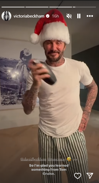 Clearly, Christmas at the Beckham household is a team effort, with David as the chef and Victoria ensuring everyone has their drinks topped up!