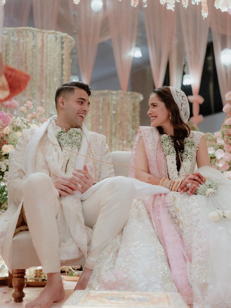 The couple, who began their wedding journey with a roka ceremony in January 2025, celebrated their union in the presence of close friends and family. Both Shazahn and Ashish chose elegant ivory ensembles designed by renowned couturier Manish Malhotra for their big day.