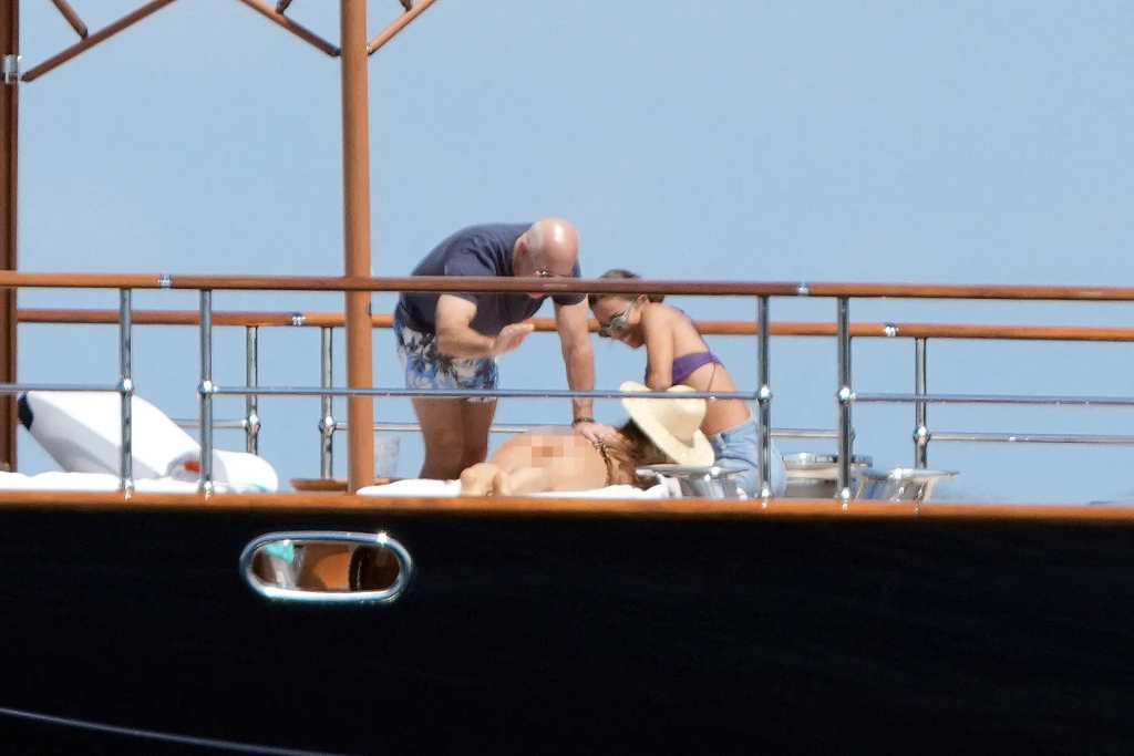 In a series of viral paparazzi images, the couple were seen engaging in lighthearted PDA. At one point, Bezos was photographed playfully spanking Sánchez, who was lounging in a leopard-print thong bikini and straw hat. A friend nearby could be seen laughing at the moment as the couple soaked in the Mediterranean sunshine.