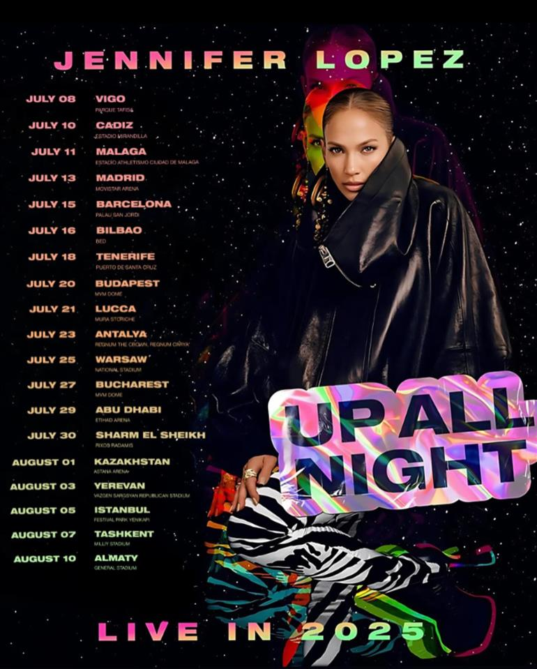 “Are you ready for UP ALL NIGHT #JLoLiveIn2025?! I can’t wait to see you this summer ✨🎤🎶”