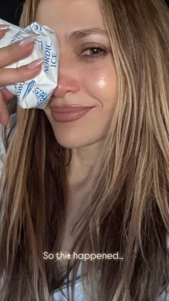 In a candid selfie, Jennifer is seen holding an ice pack over her right eye, captioning the image, “So this happened…” A second photo shows a cut on the bridge of her nose and visible bruising around her eye, with Lopez confirming that the injury occurred during “@amas rehearsals.”