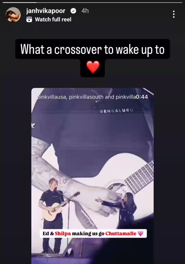The actor’s post was also re-shared by Janhvi Kapoor, who expressed her happiness at hearing the song in Sheeran’s voice.