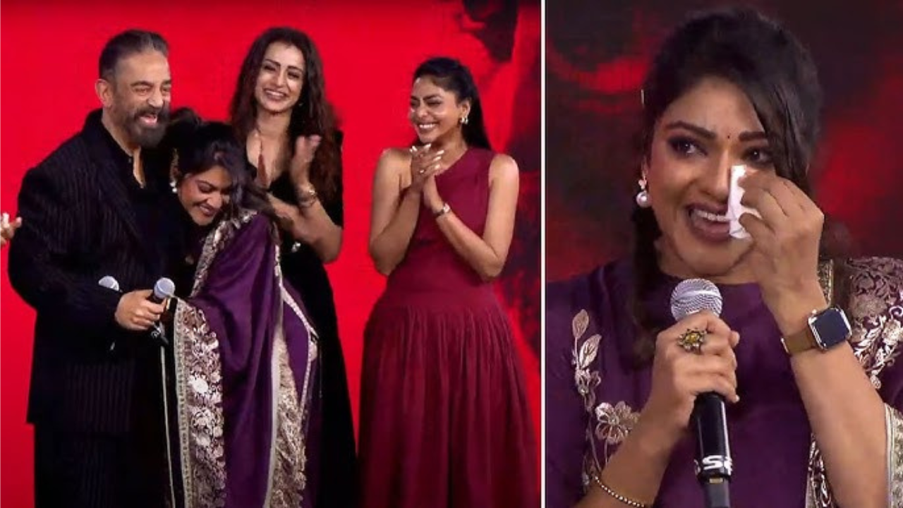 The event turned emotional when actor Abhirami, who played the female lead in Virumaandi and has a significant role in Thug Life, became visibly overwhelmed. Fighting back tears, she said, “Love you, sir; love you both. I still can’t believe that such a thing happened in my life.”