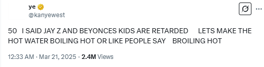 This controversy adds to the growing list of incidents tied to West’s social media activity, with many of his recent posts containing antisemitic rhetoric that has led to public backlash and professional consequences. Despite the criticism, West has shown little inclination to retract or apologize for his statements, even when they target former collaborators like Jay-Z.