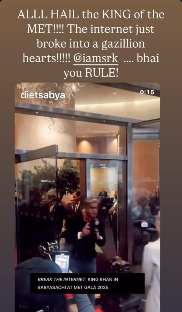 “ALLL HAIL the KING of the MET. The internet just broke into a gazillion hearts!!!!! @iamsrk …. bhai you RULE!”