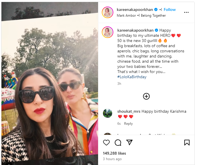 Kareena’s heartfelt gesture showcases the love and admiration she holds for her sister, ensuring that Karisma feels truly special on her milestone birthday.