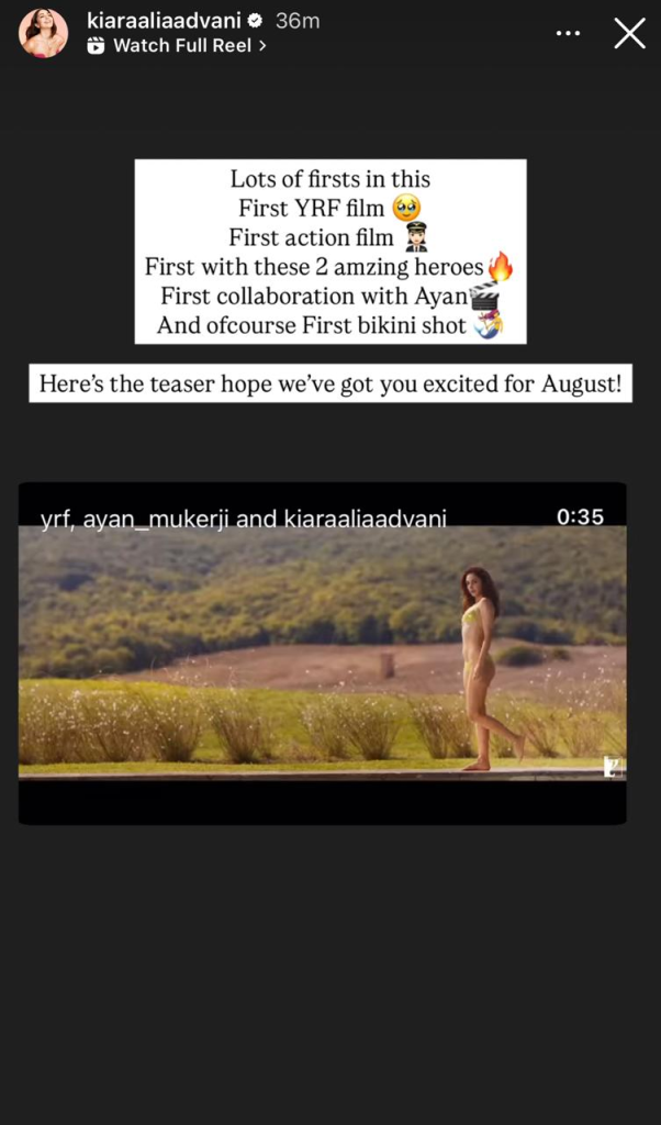 Taking to Instagram, the actress expressed her excitement, saying, “Lots of firsts in this — First YRF film, first action film, first with these two amazing heroes, first collaboration with Ayan, and of course, first bikini shot. Here’s the teaser, hope we have got u excited for August.”