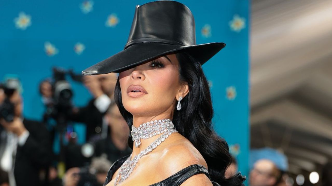 Kim Kardashian, styled by Jahleel Weaver, arrived at the Metropolitan Museum of Art wearing a bold black leather gown by Chrome Hearts, paired with a sleek black hat crafted by Stephen Jones Millinery. Her accessories included layers of Moussaieff diamond necklaces and glimmering earrings, completing the powerful silhouette.