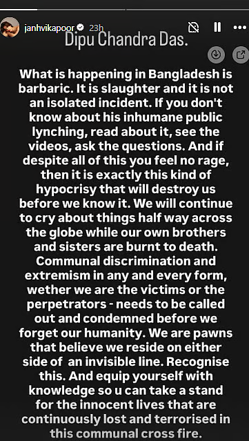 Janhvi Kapoor: Shared an emotional note calling the incident “slaughter” and not an isolated event. “We will continue to cry about things halfway across the globe while our own brothers and sisters are burnt to death,” she wrote.
