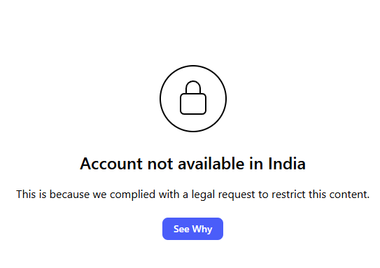 “Account not available in India. This is because we complied with a legal request to restrict this content.”