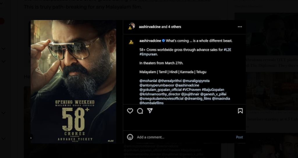 L2: Empuraan represents not just a film release, but a cultural and economic inflection point for Malayalam cinema. The scale of the release and global anticipation speaks volumes about how regional cinema is now commanding mainstream attention and global respect.