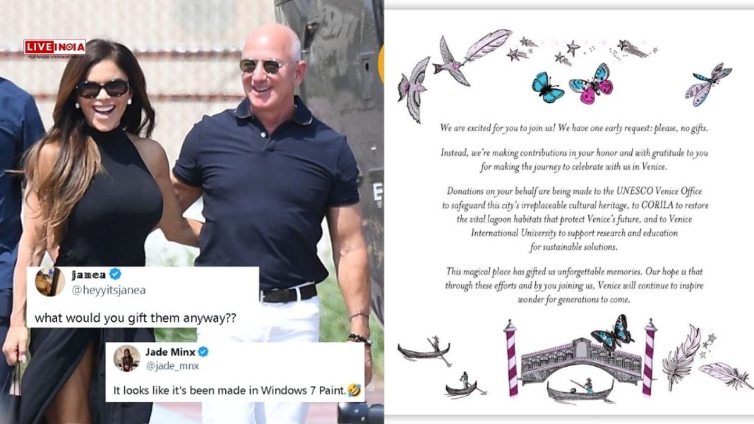 Tags: Jeff Bezos, Lauren Sanchez, Jeff Bezos wedding, Bezos wedding invite, Venice wedding, celebrity weddings, Bezos superyacht, Koru yacht, billionaire weddings, social media reactions, Microsoft Paint, UNESCO, CORILA, wedding backlash