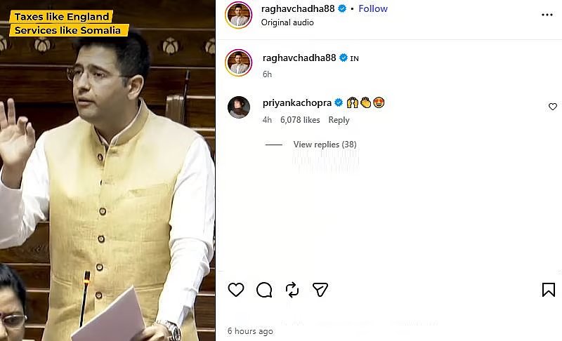 More controversially, the party reportedly requested that Chadha not be allotted any speaking time from the party’s quota—a move sources close to the MP described as a “bid to silence” him. In her reaction, Priyanka commented with a series of supportive emojis, including the raising hands, clapping hands, and smiling face with heart-eyes, signaling her solidarity with his “aam aadmi” message.