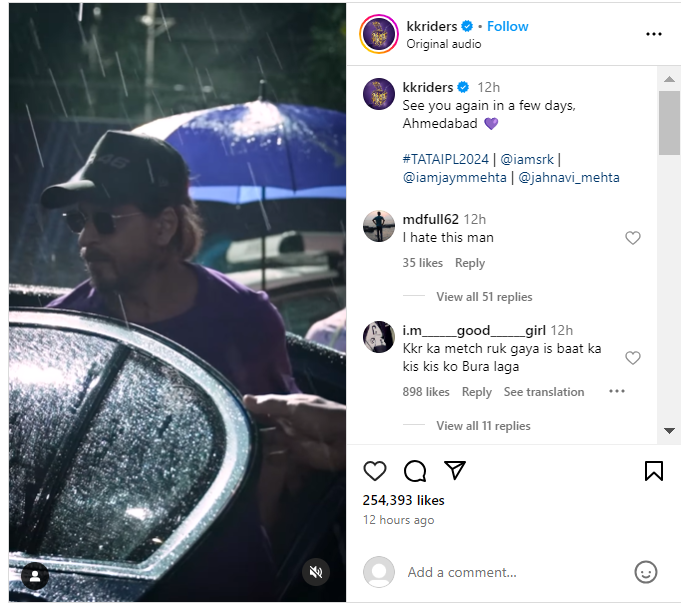 The Gujarat Titans vs Kolkata Knight Riders IPL 2024 match faced abandonment due to rain in Ahmedabad, disappointing fans. However, Shah Rukh Khan, co-owner of KKR, brought warmth to the situation by visiting the Narendra Modi Stadium and meeting the players. A video shared on KKR’s official handle captured SRK sharing hugs with KKR’s mentor Gautam Gambhir, captain Shreyas Iyer, and other team members, spreading love despite the weather dampening the game.