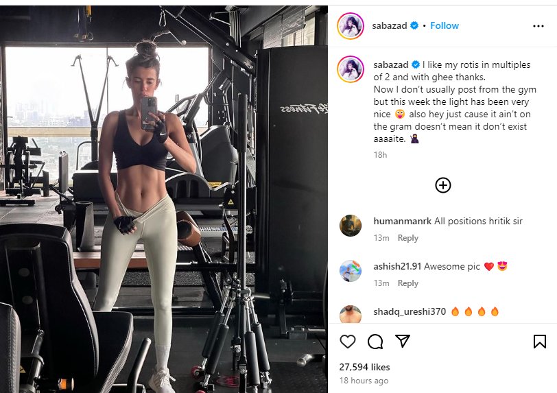 As Saba continues to inspire with her fitness journey, fans eagerly await more glimpses into her healthy lifestyle and relationship with Hrithik.