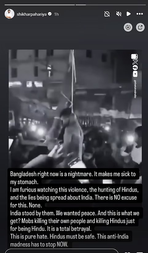 Pahariya is joined by a growing list of public figures demanding action. Actors Swara Bhasker, Devoleena Bhattacharjee, and Munawar Faruqui have all used their platforms to denounce the lynching and call for the protection of religious minorities under the Muhammad Yunus-led interim government.