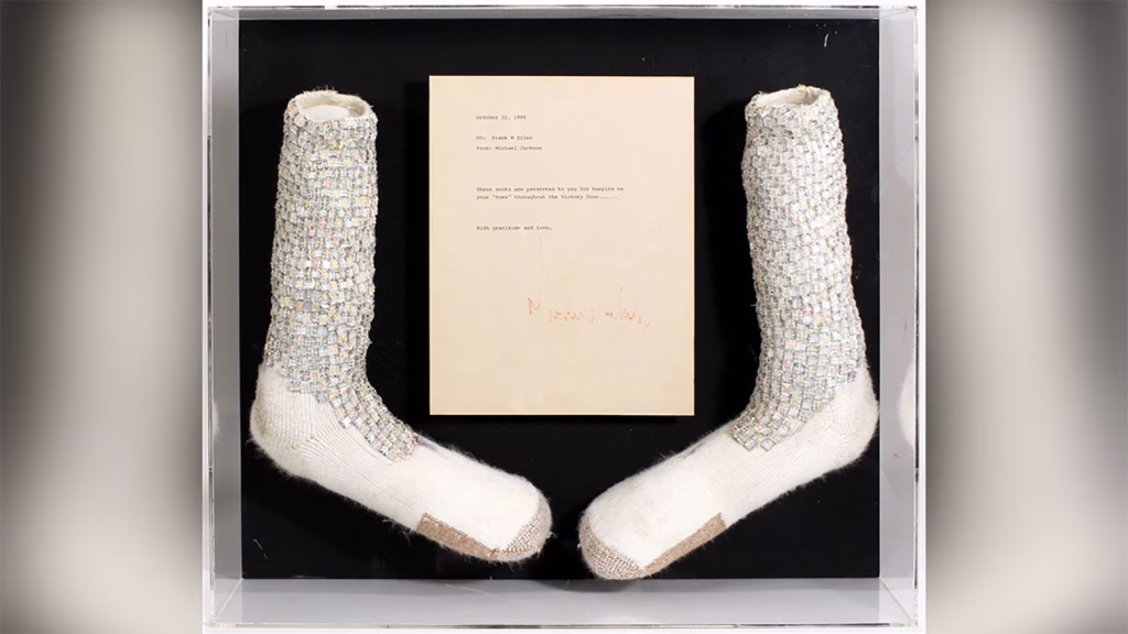 August 1, 2025:The “King of Pop” still fascinates collectors. A single, stained sock that Michael Jackson wore sold for €7,688 (about $8,822) at a French auction. The white athletic sock, which he wore during a 1997 performance on his HIStory World Tour, sold for far more than the estimated €3,000 to €4,000, showing how powerful his standing as a global icon still remains.