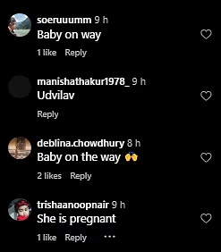 Comments flooded the posts, with users pointing to a perceived “pregnancy glow” and some even congratulating the couple. “She looks pregnant,” wrote one Instagram user, while another commented, “She is glowing…she is definitely pregnant.” A section of users also suggested that the actress was subtly trying to conceal her midsection by placing her hand over her baby bump while posing for the paparazzi.