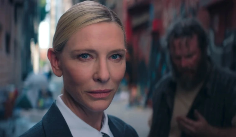 The enigmatic Front Man, revealed as In Ho, survives the destruction of the island and escapes with Jun Hee’s child. In the final moments, he is seen in Los Angeles watching Cate Blanchett’s character, who is poised to take on the ominous role of the next Salesman, hinting at the continuation of the sinister games on new soil.