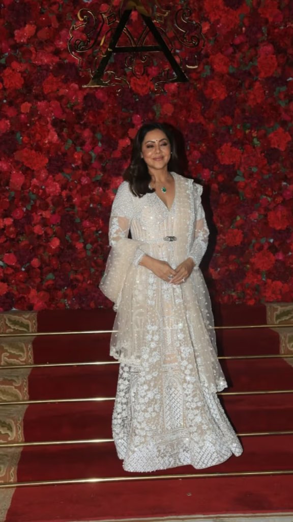 Also spotted at the wedding was actress Suhana Khan, the daughter of Bollywood superstar Shah Rukh Khan, who looked radiant in an ivory lehenga paired with bold emerald jewellery. Her mother, Gauri Khan, accompanied her to the event, dazzling in an elegant ivory gown complemented with an emerald necklace.