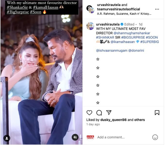 This grand project further establishes Urvashi as the Number 1 Bollywood actress preferred for South and international projects. She had previously teased her fans with glimpses of her and Shankar together on Instagram.
