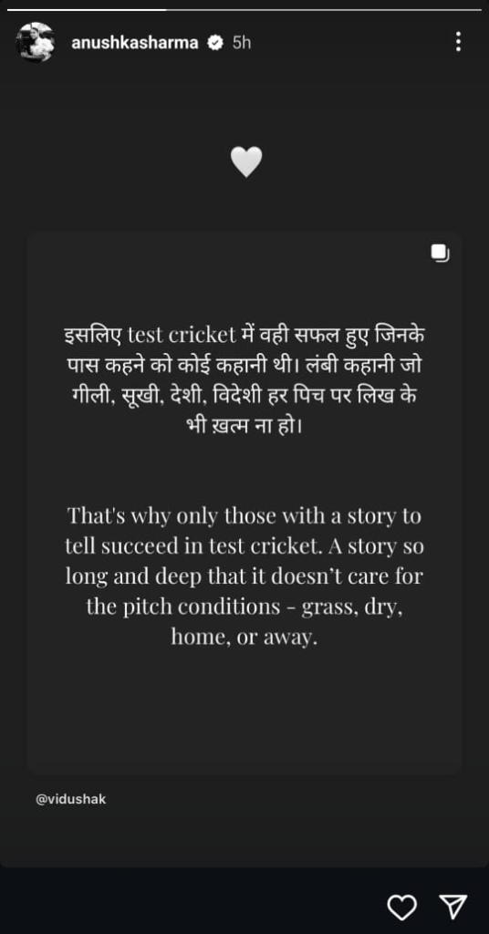 Grover took to Instagram to share a moving piece describing Test cricket as a “narrative sport”, drawing parallels between the game and a literary novel. He highlighted the sport’s complexity — from pitch conditions and weather to mental endurance — noting that Test cricket demands more than just skill. “Only those with a story to tell succeed in Test cricket,” he wrote.