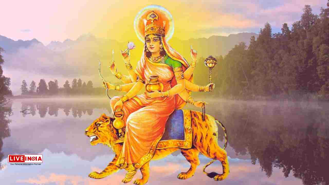 April 2, India: The fourth day of Navratri is dedicated to the worship of Maa Kushmanda, the fourth manifestation of Goddess Durga. Known as the radiant cosmic creator, Maa Kushmanda is revered as the source of universal energy, having created the universe with her divine smile.