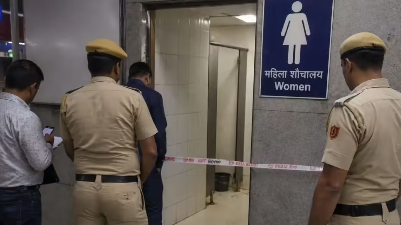 A man’s body found inside a locked women’s restroom at Inderlok Metro Station triggers panic; police probe suicide and foul play angles.