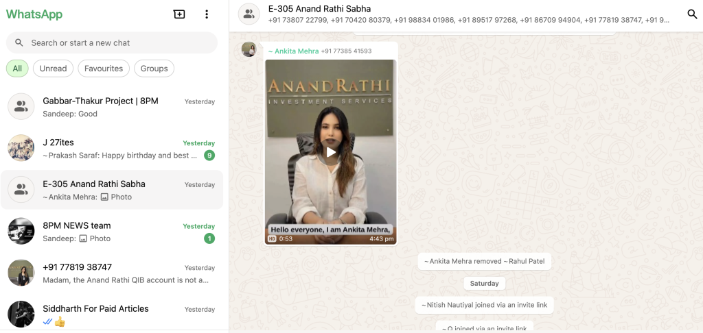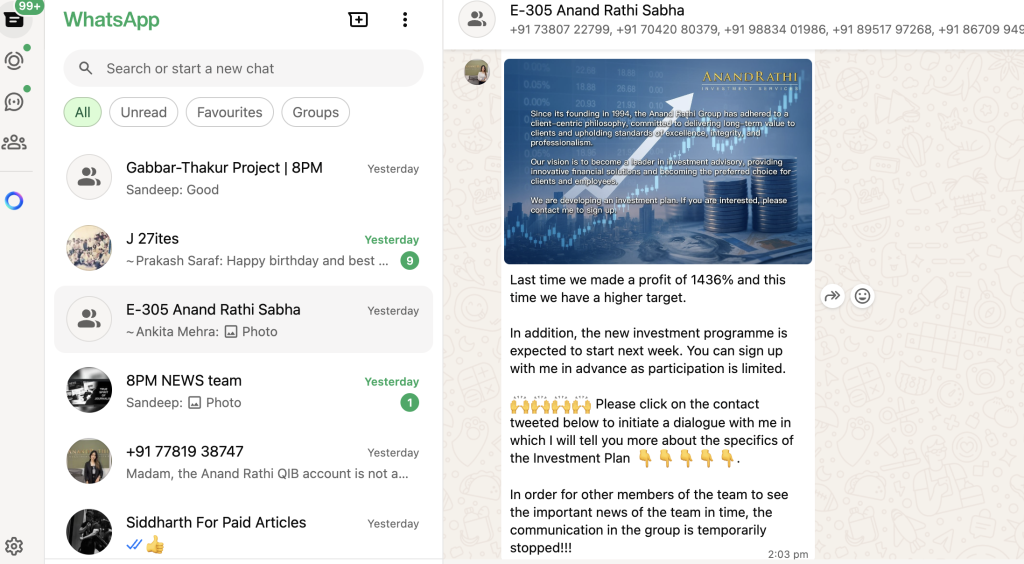 The group looked legitimate. It carried the branding of Anand Rathi, and even had Mehul Kothari’s photo and name attached.