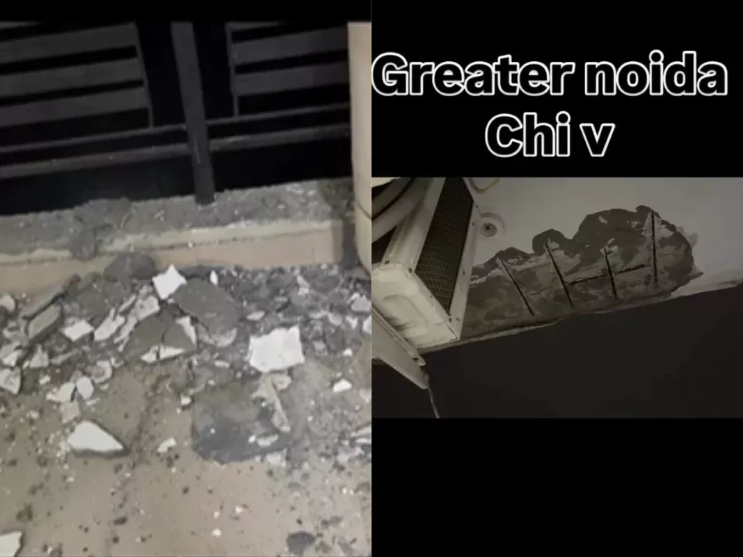 GREATER NOIDA — A harrowing late-night incident in Chi 5, Greater Noida, has ignited a fierce debate over real estate transparency and construction safety. Sonam Singh, a resident of a premium high-rise, took to Instagram to share footage of her balcony ceiling collapsing at approximately 2:00 AM on Wednesday, narrowly avoiding a potential tragedy.