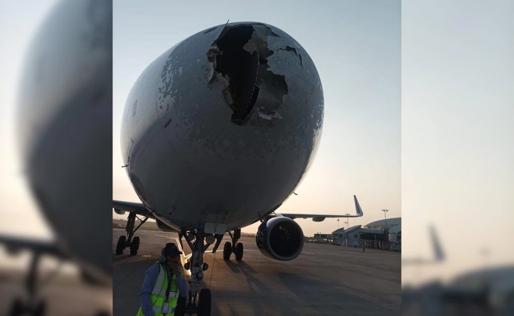 While IndiGo did not initially confirm the extent of damage, images widely circulated on social media—and later verified by NDTV—show a significant dent and damage to the aircraft’s nose cone, likely caused by the hailstorm’s impact.