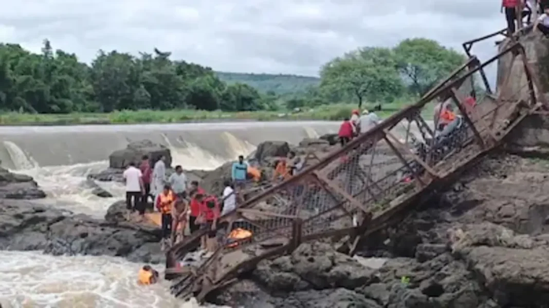June 14, 2025: An iron bridge spanning the Indrayani River in Kundmala, a rural pocket in Pune’s Maval taluka, collapsed on Sunday amid heavy rainfall, raising fears that 25 to 30 tourists may have been swept away.