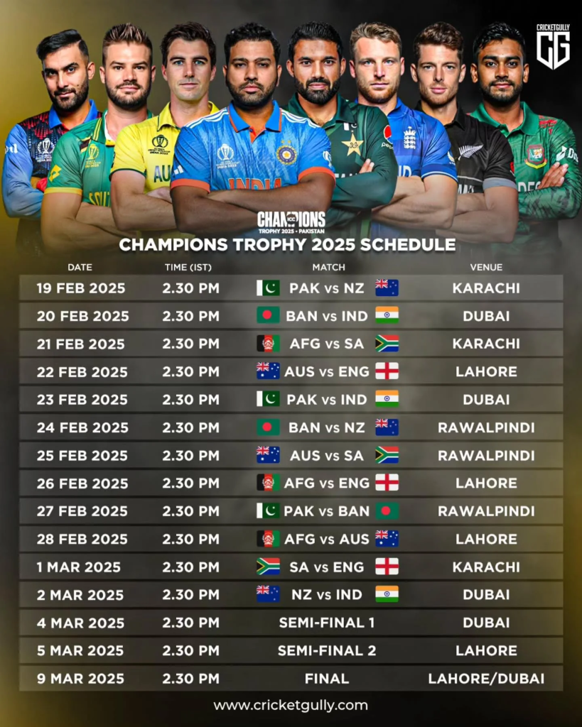 Champions Trophy 2025: Schedule Announced: Key Dates, Teams, and Venues Revealed