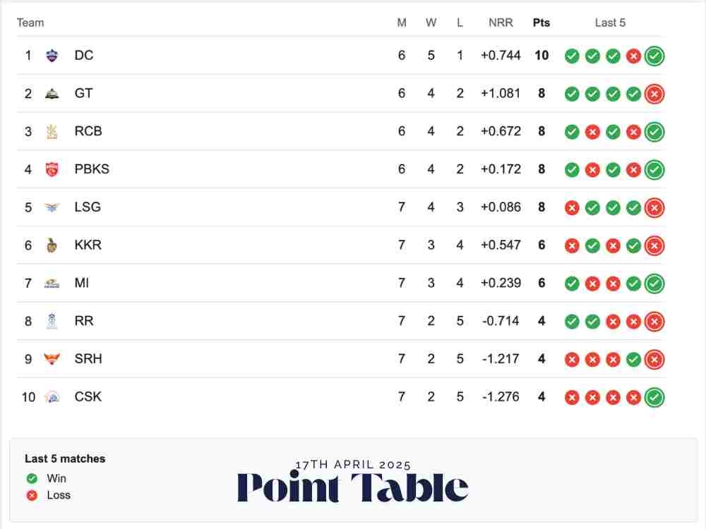 With the win, MI moved to 7th place on the table with 6 points (3 wins, 4 losses), while SRH slipped to 9th with just 4 points from 7 games.