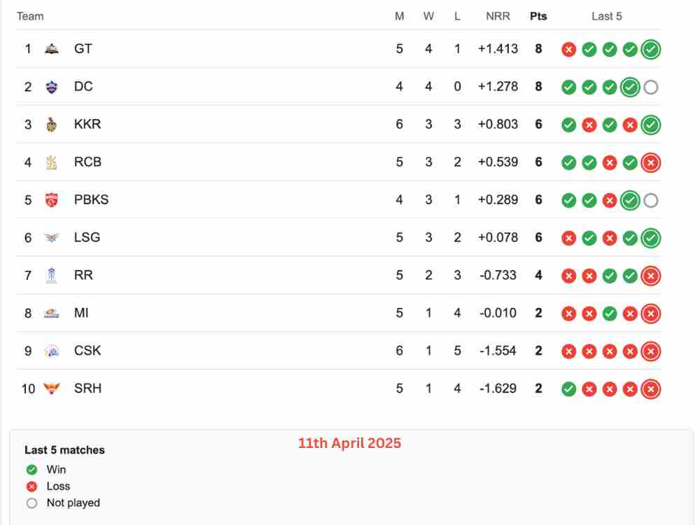 With this comprehensive win, KKR moved to third on the points table with three victories in six games. Meanwhile, CSK slipped further down, now placed ninth after suffering their fifth consecutive defeat — a worrying trend for the five-time champions.