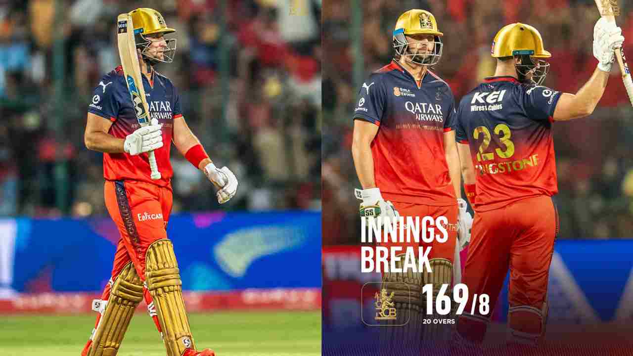 RCB ended their innings at 169/8 in their 20 overs after Tim David was cleaned up for 32 in 18 balls, with three fours and two sixes by Prasidh Krishna.