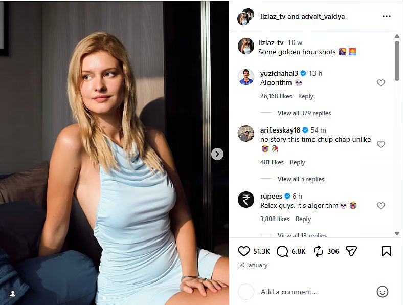 The drama began earlier today when eagle-eyed fans spotted Kohli’s engagement on a “golden hour” photo posted by LizLaz. Given Kohli’s massive global following, the interaction instantly became the top trending topic, sparking a massive “meme fest” and leading many to recall his 2025 clarification regarding a similar interaction with actor Avneet Kaur.